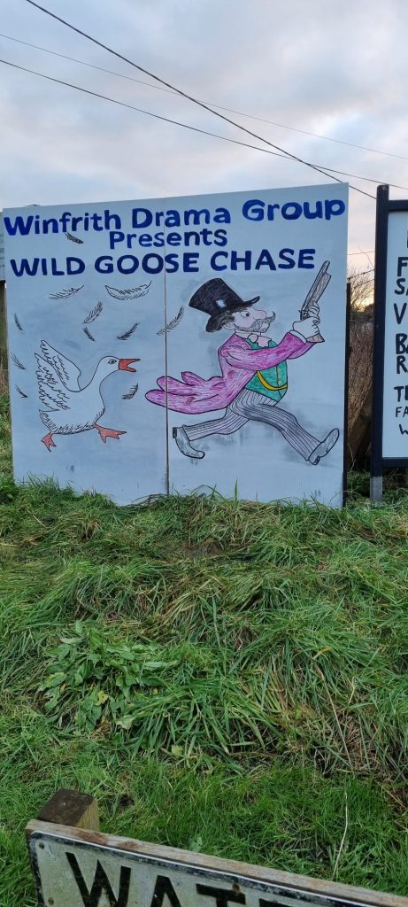 Winfrith Drama Groupโs production โ โWild Goose Chaseโ, written by Derek Benfield.